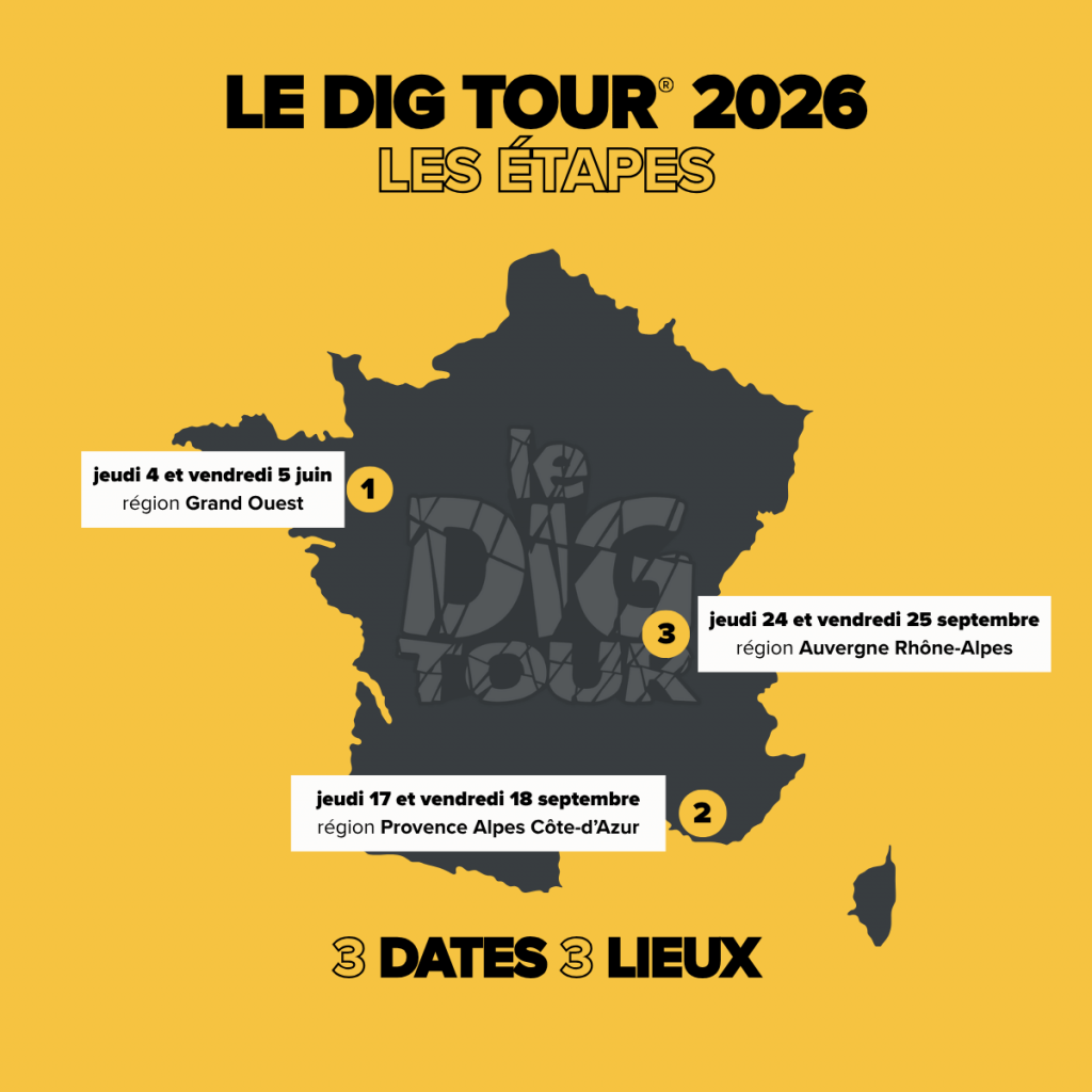 Les étapes du Dig Tour 2025 auront lieu, les 5 & 6 juin, les 12 & 13 juin, 18 & 19 septembre et 25 & 26 septembre 2025.