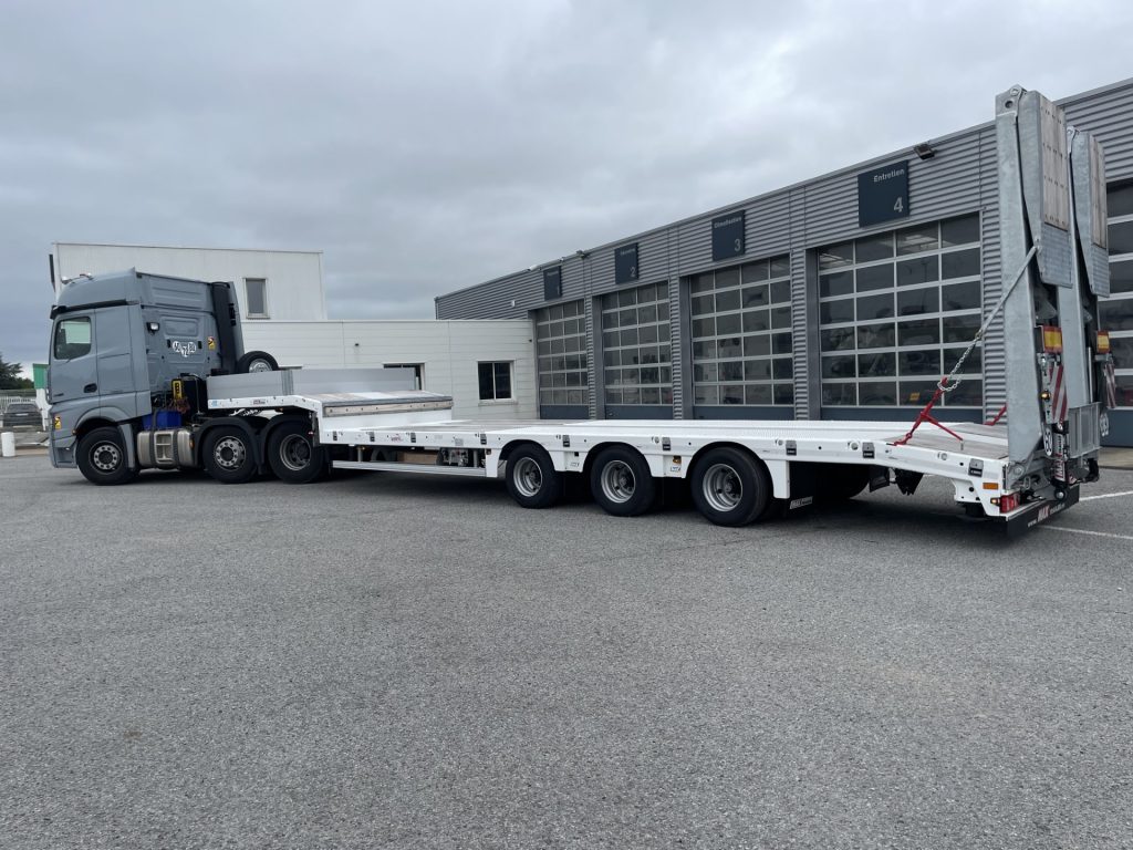 L’ensemble de la gamme MAN est donc disponible auprès du concessionnaire, complété par les remorques Krone, Benalu, Bennes Marrel, Faymonville, Max Trailer et Meiller. De quoi trouver l’ensemble qu’il faut à la clientèle TP. Sur le Dig Tour, Sarevi était présente avec une Max100, semi-remorque surbaissée de Max Trailer équipée d’une table élévatrice pour plus de sécurité pour monter sur le col de cygne et une Cargotrack, la benne polyvalente en acier Hardox signée Bennes Marrel avec porte hydraulique, bâchage électrique et feux arrière qui se replient au bennage.